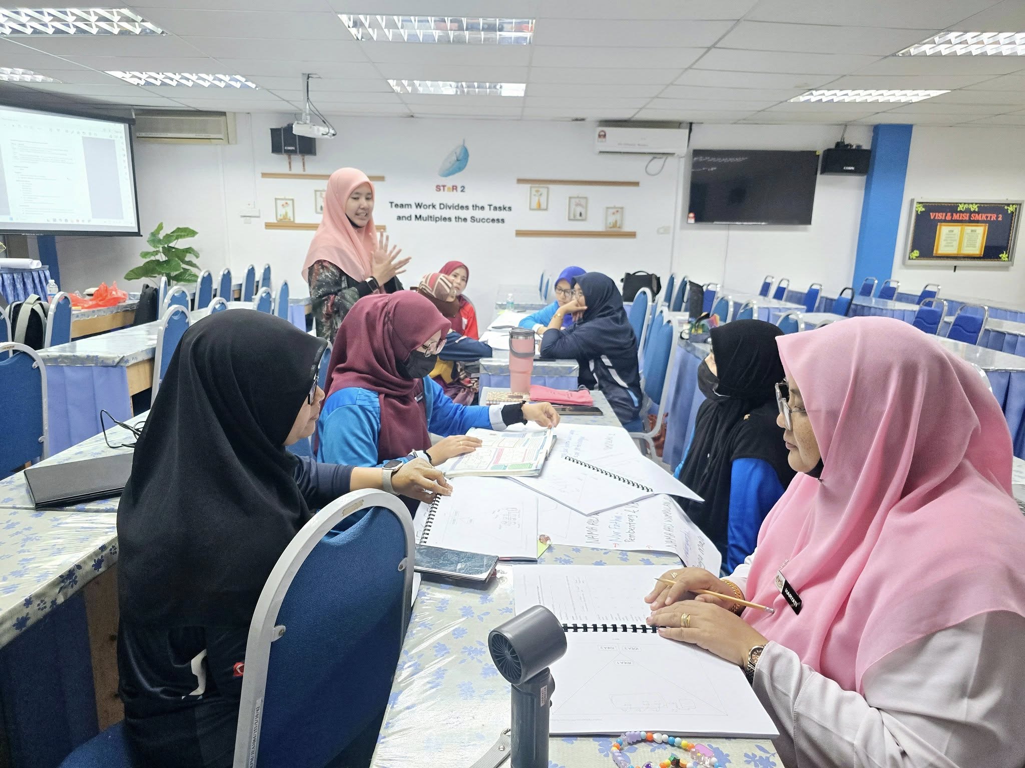 Bengkel ini juga dijadikan ruang kolaboratif bagi guru dan fasilitator membincangkan isu-isu pelaksanaan dalam konteks sebenar bilik darjah. Guru-guru seperti Nur Fathin Wan Ab Malek dan Nur Azlin Ab Aziz memainkan peranan penting dalam mengenal pasti keperluan praktikal serta menyumbang cadangan penambahbaikan berdasarkan pengalaman mengajar di kelas sebenar.
