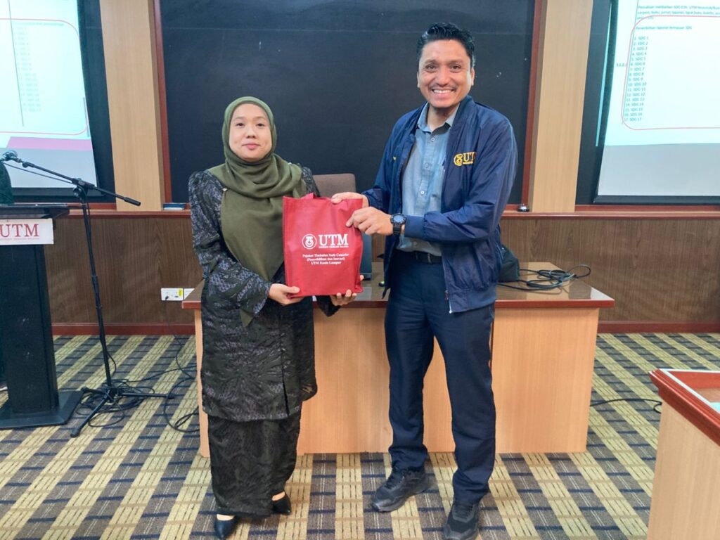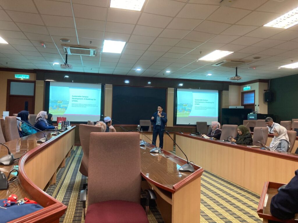 KUALA LUMPUR, 18 Julai – Pejabat Timbalan Naib Canselor (Penyelidikan dan Inovasi), Universiti Teknologi Malaysia (UTM) Kuala Lumpur terus mengorak langkah dalam memperkukuh agenda kelestarian menerusi penganjuran Ceramah Kelestarian: Sustainable Development Through Green Building Index – ESG Implementation in UTMKL. Program ini telah diadakan di Bilik Ilmuan 1, Anjung Menara Razak dan dihadiri oleh warga Pejabat Timbalan Naib Canselor (Penyelidikan dan Inovasi), Kuala Lumpur.
