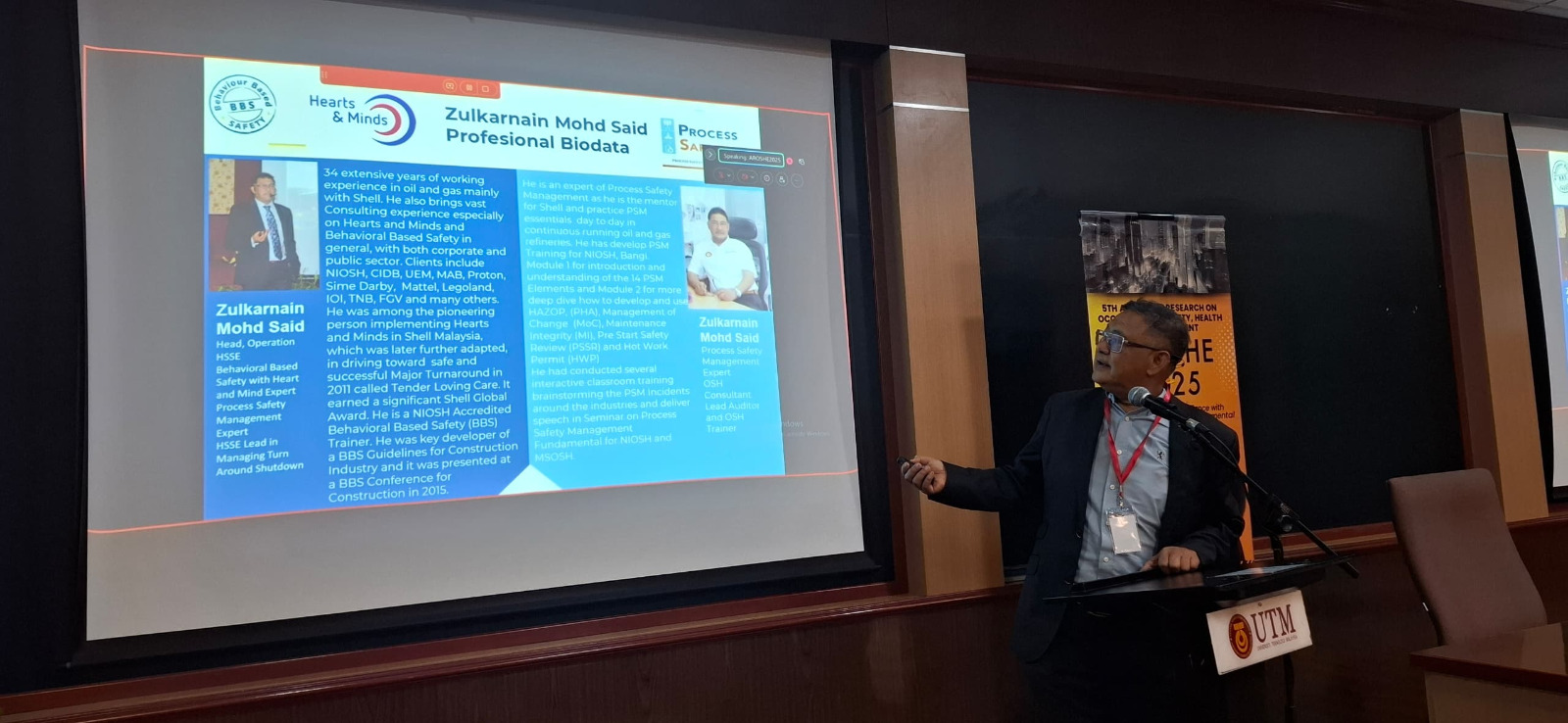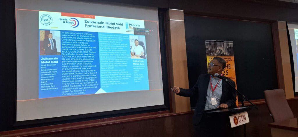Zulkarnain Mohd Said, pakar dalam Pengurusan Keselamatan Proses dan Keselamatan Berasaskan Tingkah Laku (BBS), membuka sesi pertama dengan tajuk “Safety Generative Leadership Toward Beyond Compliance” yang mengetengahkan pendekatan kepimpinan keselamatan secara holistik.