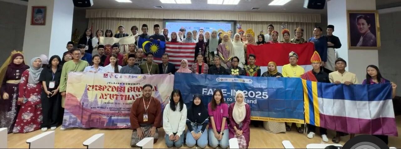 PATHUM THANI, 4 Ogos – Program Jelajah Komuniti: Ekspedisi Budaya Ayutthaya yang berlangsung dari 29 Julai hingga 4 Ogos 2025 telah membuka ruang kerjasama dan pertukaran budaya antara Universiti Teknologi Malaysia (UTM), Universitas Airlangga (UNAIR) dari Indonesia, dan Rajamangala University of Technology Thanyaburi (RMUTT) dari Thailand. Program ini turut mendapat sokongan daripada Institut Teknologi Raja Mongkut Ladkrabang (KMITL) sebagai salah satu lokasi pengisian utama.