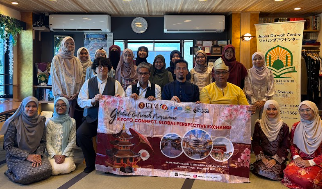 OSAKA, 26 Ogos – Universiti Teknologi Malaysia (UTM) terus memperkukuh agenda pemerkasaan mahasiswa di pentas global melalui Global Outreach Programme @ Japan – Kyoto Connect, Global Perspective Exchange, yang berlangsung pada 19 hingga 23 Ogos 2025 di Kyoto dan Osaka, Jepun. Program anjuran Jawatankuasa Kolej Pelajar (JKP) Kolej Perdana ini menghimpunkan seramai 15 orang mahasiswa UTM bersama tiga staf pengiring, dengan objektif untuk memperluas horizon pemikiran mahasiswa melalui penghayatan budaya, pertukaran akademik, dan penglibatan komuniti.