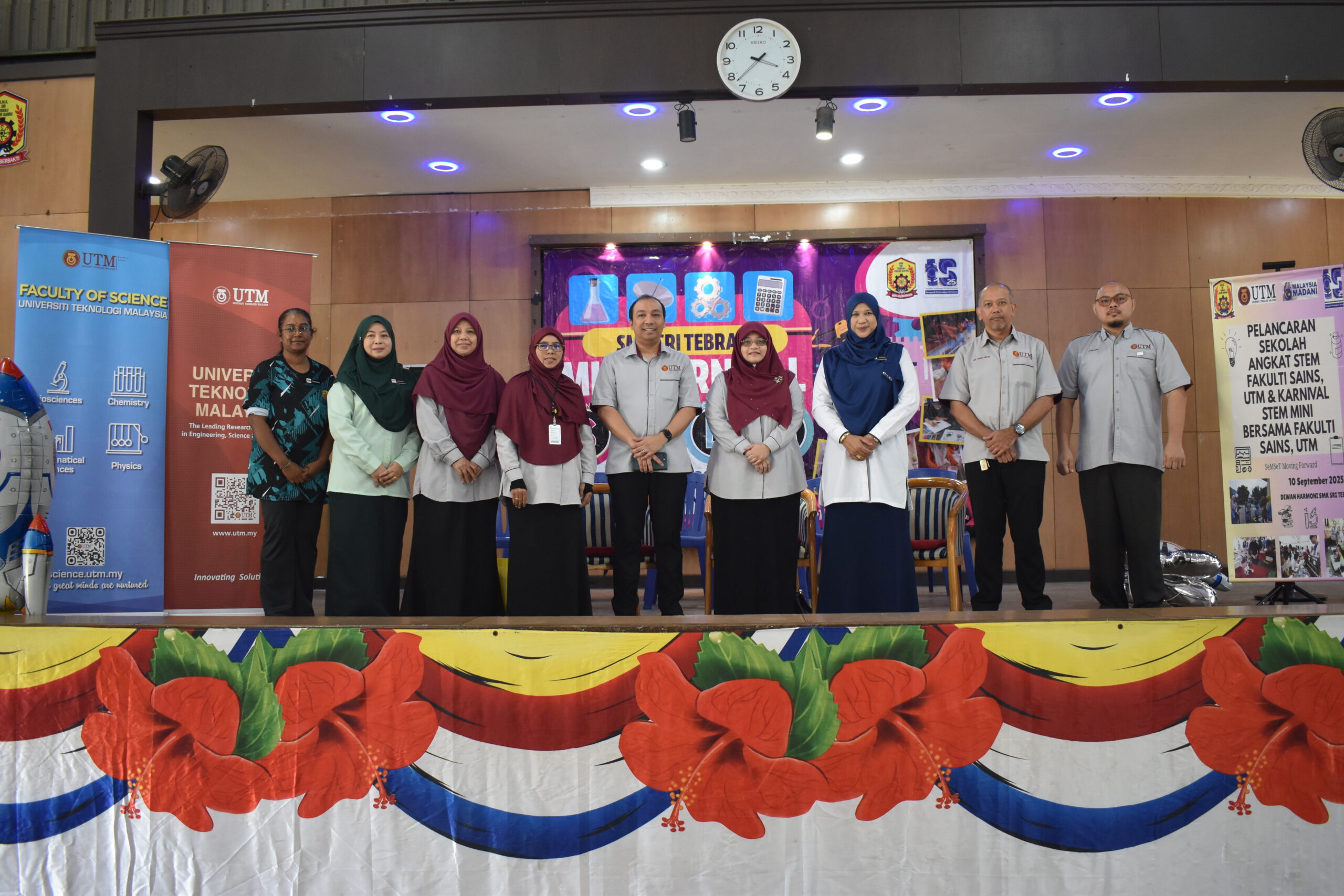 Majlis pelancaran disempurnakan oleh Puan Suraiya Ashaary, Pengetua SMK Sri Tebrau, bersama Prof. Madya Dr. Shafinaz Shahir, Dekan Fakulti Sains UTM. Antara yang turut hadir ialah Prof. Madya Ts. ChM. Dr. Nik Ahmad Nizam Nik Malek, Timbalan Dekan (Penyelidikan, Inovasi dan Pembangunan), Prof. Madya ChM. Dr. Mohd Firdaus Abdul Wahab, Pengurus (Hubungan Luar dan Global) dan Wakil Ketua Jabatan Biosains, Prof. Madya Dr. Zarina Mohd Khalid (Ketua Jabatan Sains Matematik), Dr. Roslinda Zainal (Ketua Jabatan Fizik), dan Dr. Mohamad Afiq Mohamed Huri (Wakil, Ketua Jabatan Kimia), bersama barisan pensyarah dan pelajar-pelajar daripada semua jabatan di Fakulti Sains.