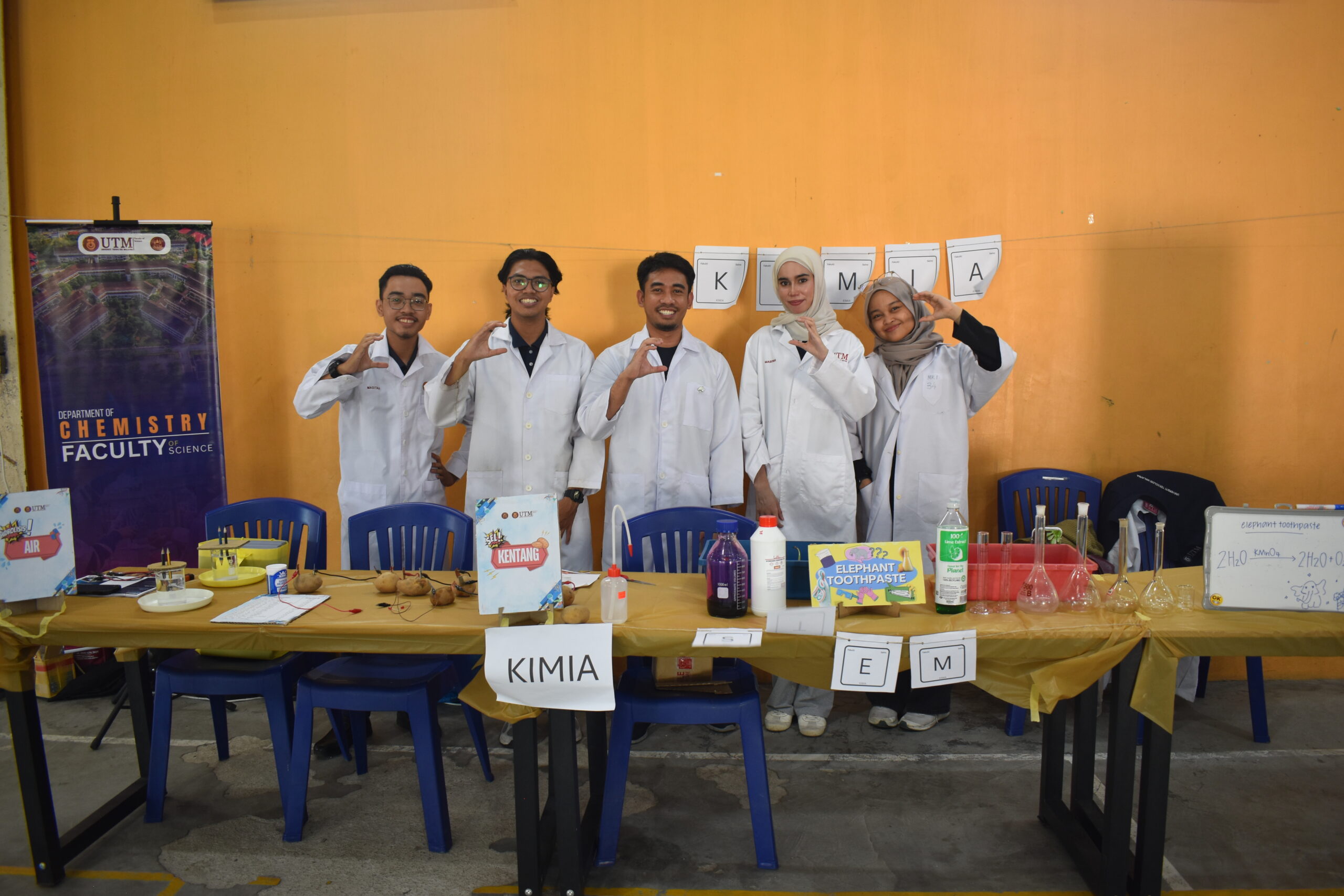 Jabatan Kimia menampilkan demonstrasi “Elephant Toothpaste” yang merupakan demonstrasi menarik menunjukkan bagaimana kimia berfungsi dengan langkah yang mudah difahami. Pelajar dapat melihat sendiri bagaimana apabila sabun pencuci pinggan ditambahkan ke dalam larutan hidrogen peroksida dan kalium permanganat, gelembung oksigen yang terhasil terperangkap dan menghasilkan buih yang meletus keluar, menyerupai ubat gigi dari tiub gergasi. Terdapat juga demonstrasi “Potato Cell” menggunakan kentang bagi menunjukkan bagaimana tindak balas kimia boleh menghasilkan tenaga elektrik. Dan akhir sekali daripada Jabatan Kimia, adalah eksperimen elektrolisis yang dilakukan menggunakan dua batang pensel di mana grafit pada pensel bertindak sebagai elektrod, bagi membuktikan air boleh diuraikan melalui proses elektrolisis menggunakan tenaga elektrik.