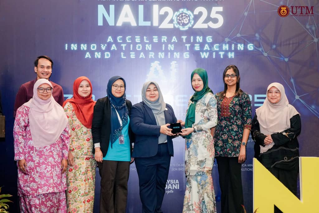 The prestigious recognition was presented by Prof. Ts. Dr. Intan Zaurah Mat Darus, Deputy Vice-Chancellor (Academic and International), and Assoc. Prof. Dr. Nurbiha A. Shukor, Director of the Centre for Digital and Flexible Learning (UTM CDex), in appreciation of innovative and high-impact teaching and learning initiatives demonstrated by UTM educators. NALI 2025 carries the theme of Artificial Intelligence (AI), reflecting UTM’s commitment to advancing education through technology and innovation. The event serves as a key platform for showcasing UTM’s best educational innovations that enhance learning experiences and contribute to the advancement of academic excellence.