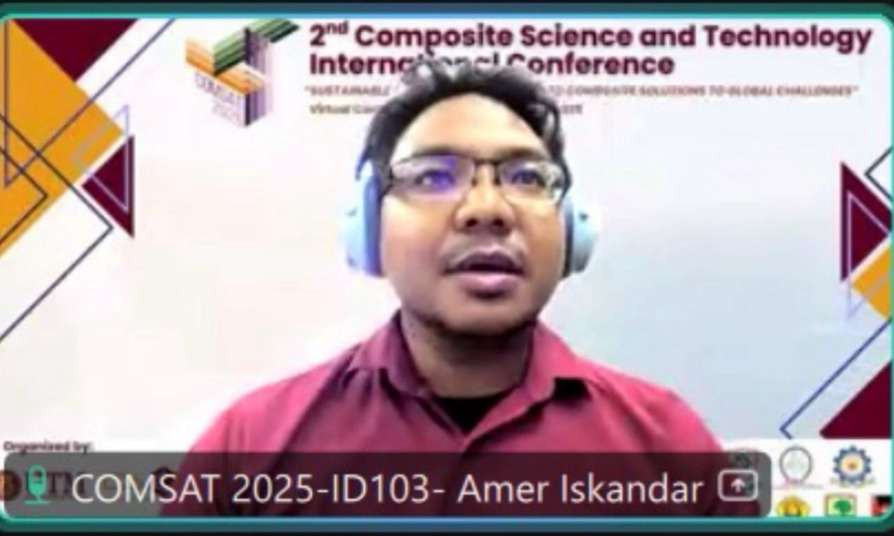 During his first semester, Amer successfully published a review article titled “Mechanical Properties and Applications of Jute Fibre Reinforced Thermoplastic Composites: A Brief Review” in the Journal of Natural Fibre Polymer Composites. He also achieved notable success at the International Conference on Composite Science and Technology (COMSAT 2025), where he received the Best Presenter Award and the Overall Best Presenter Award for his presentation titled “Applying Machine Learning in Glass Fibre Composite Cross Arms for Transmission Towers: A Short Review.”