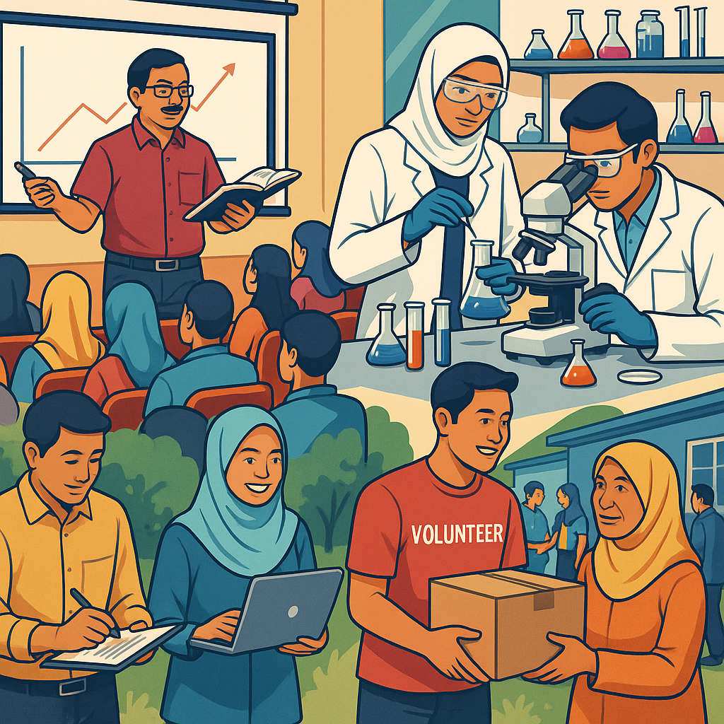Andai ditelusuri bait-bait lirik lagu keramat Universiti Teknologi Malaysia (UTM), “Keunggulan Terbilang”, terserlah nilai dan komponen utama yang membentuk ekosistem UTM, iaitu “pengajaran”, “penyelidikan”, “penulisan”, “perundingan” dan “perkhidmatan kepada watan”. Semua komponen ini digerakkan oleh satu agen perubahan yang tidak ternilai, iaitu golongan akademia. Tanpa mereka, apalah erti kewujudan sebuah institusi pendidikan tinggi. Golongan akademia bukan sekadar menyampaikan ilmu di dewan kuliah, tetapi turut berperanan sebagai pemikir, penyelidik, penulis dan perunding yang menyumbang kepada pembangunan ilmu serta kemajuan negara. Aktiviti-aktiviti ini akhirnya memberi manfaat besar kepada pelbagai pihak, khususnya mahasiswa, masyarakat, kerajaan dan industri. Mahasiswa, misalnya, dibekalkan dengan ilmu, kemahiran dan nilai afektif bagi membentuk atribut yang diperlukan oleh industri masa kini. Mereka perlu sentiasa mempersiapkan diri menghadapi perubahan yang sejajar dengan tuntutan semasa. Jika dahulu pensyarah menyampaikan kuliah menggunakan helaian nota pada kertas lutsinar yang dipancarkan ke layar, atau menulis dengan pen marker sambil merujuk buku teks yang tebal, kini suasananya jauh berbeza. Dunia pendidikan terus berkembang seiring pesatnya kemajuan teknologi, khususnya kecerdasan buatan atau Artificial Intelligence (AI), yang mula mengubah wajah dan kaedah penyampaian ilmu dalam ekosistem universiti moden.