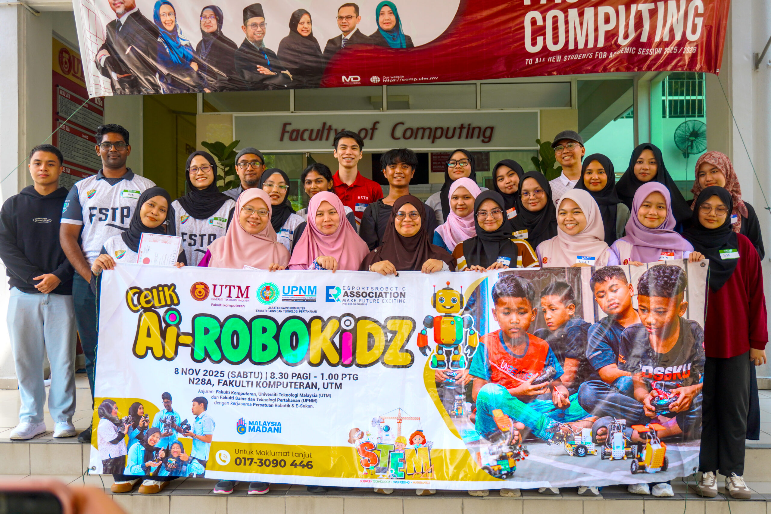 JOHOR BAHRU, 8 Nov – Program Celik AI Robokidz 2025 anjuran Fakulti Komputeran, Universiti Teknologi Malaysia (UTM) dengan kerjasama Universiti Pertahanan Nasional Malaysia (UPNM) berlangsung dengan jayanya pada 7 hingga 8 November 2025 di N28A, Fakulti Komputeran UTM.