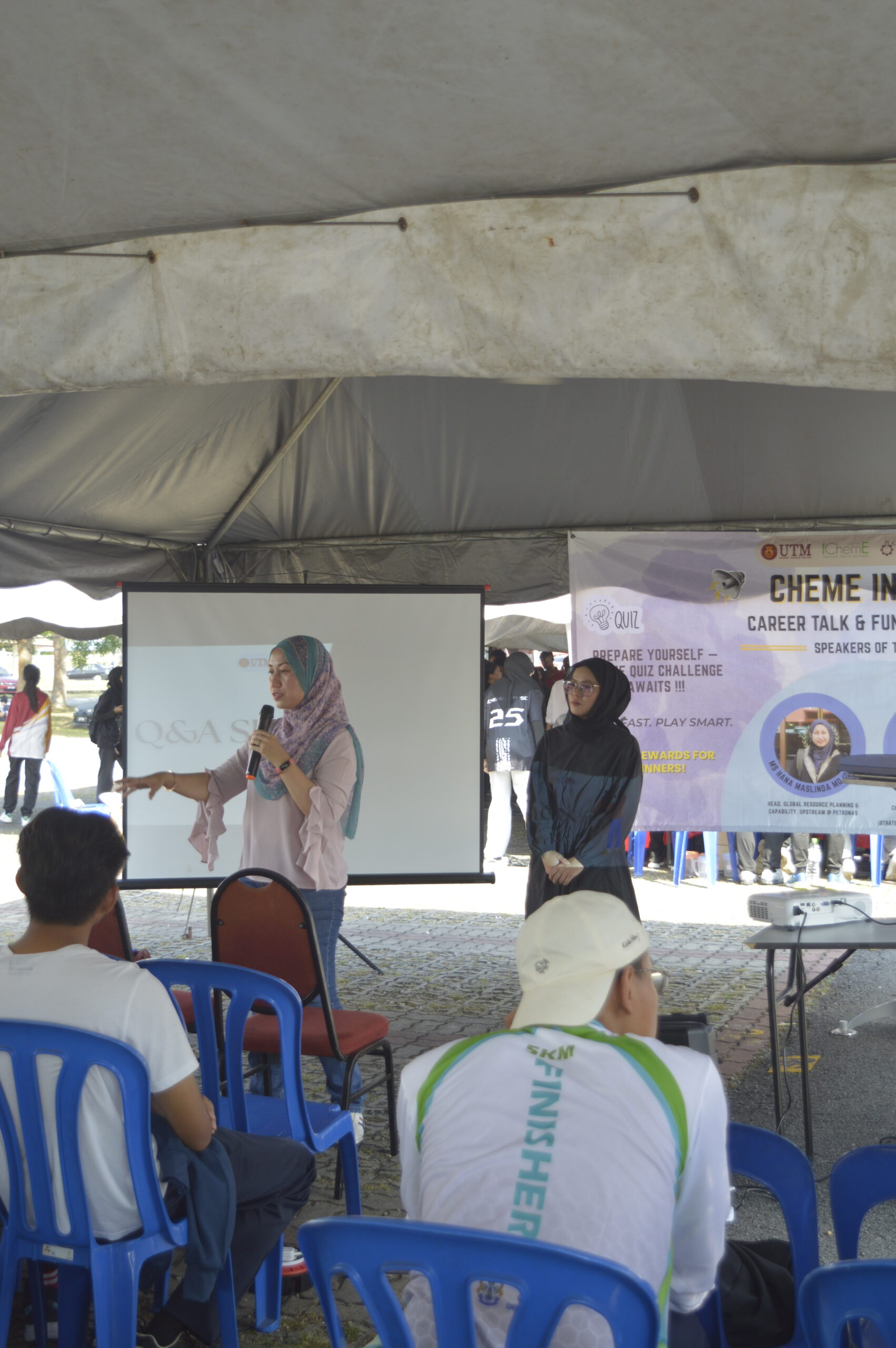 Sementara itu, sesi ceramah kerjaya ChemE Inspire turut menarik perhatian apabila dua panel jemputan, iaitu Hana Maslinda Md Idrus dari Petronas Carigali Sdn Bhd dan Puteri Sofia Mohd Noor, pelajar FKT yang berkongsi pengalaman latihan industrinya di PRefChem Sdn Bhd, memberikan inspirasi dan pendedahan kerjaya kepada para pelajar.