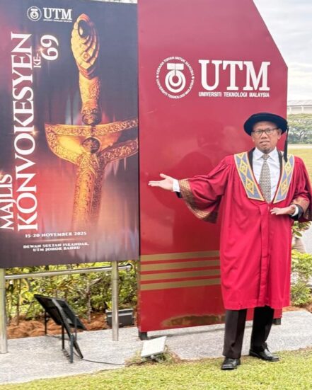 JOHOR BAHRU, 19 Nov – Kejayaan Ir. Dr. Ghazali Harun, penerima Ijazah Doktor Kejuruteraan (Doctor of Engineering – EngDoc) dalam bidang Engineering Business Management dari Universiti Teknologi Malaysia (UTM) sempena Majlis Konvokesyen ke-69 menjadi bukti bahawa pendidikan tinggi bukan sekadar pencapaian akademik, tetapi satu amanah untuk memperkukuh pembangunan negara melalui inovasi dan ilmu terapan.