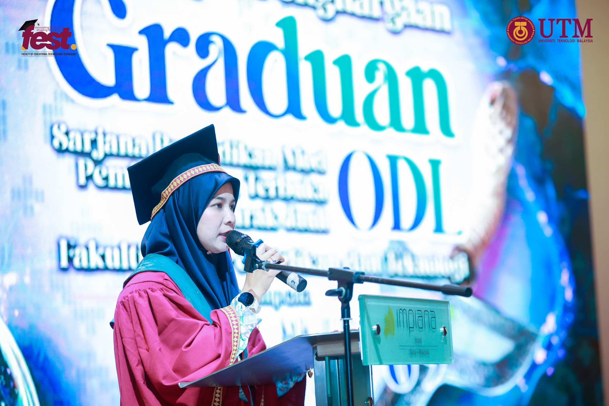Setelah dua tahun mengikuti pengajian secara dalam talian, bermula Semester 2 Sesi 2022/2023 bagi kohort pengambilan pertama dan Semester 1 Sesi 2023/2024 bagi kohort pengambilan kedua, kedua-dua kohort program Sarjana Pendidikan (Matematik) mod ODL (Open & Distance Learning), atau dalam bahasa Melayu dikenali sebagai Pembelajaran Terbuka dan Jarak Jauh, akhirnya bersemuka secara fizikal dengan pensyarah dan rakan-rakan mereka. Inilah detik istimewa graduan ODL yang selama ini hanya bertemu di alam maya sepanjang empat semester, dan kini bertentang mata dengan pensyarah serta rakan seprogram dalam satu majlis anjuran Fakulti Sains Pendidikan dan Teknologi (FEST), Universiti Teknologi Malaysia (UTM), bertempat di Hotel Impiana Senai sempena Majlis Konvokesyen UTM ke-69. Seramai tujuh dan lapan orang graduan, masing-masing dari Kohort 1 dan 2, berkumpul dalam majlis ini sebelum majlis konvokesyen mereka pada 17 November 2025. Majlis dirasmikan oleh Dekan FEST, Prof. Dr. Noraffandy Yahaya.