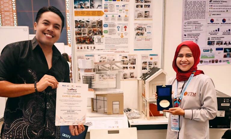 MELAKA, 13 Nov – Universiti Teknologi Malaysia (UTM) sekali lagi memperkukuh reputasinya dalam inovasi pengajaran dan pembelajaran apabila meraih Pingat Emas bagi kategori Invention, Innovation & Design on e-Learning (IIDEL) di International University Carnival on E-Learning (IUCEL) 2025 yang berlangsung di Universiti Teknikal Malaysia Melaka (UTeM). Pencapaian ini hadir menerusi projek inovatif bertajuk “From Craft to Code: AI-Driven Innovation in Construction Learning”, hasil kolaborasi pensyarah dari Jabatan Senibina, Fakulti Alam Bina dan Ukur (FABU).