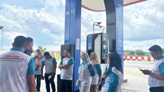The tour began with an immersive look at the Kuching Urban Transportation System (KUTS), led by Sarawak Metro Sdn. Bhd. The core of the system is the Autonomous Rapid Transit (ART) vehicle, a trackless, sensor-guided solution that utilises the Hydrogen Production and Refuelling Facility at the PETROS Station. The ART system is powered by Proton Exchange Membrane (PEM) fuel cell technology, ensuring zero tailpipe emissions. Students explored the concept, operation, and maintenance of this unique urban transport system.