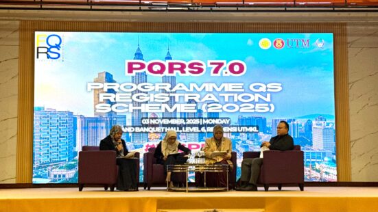KUALA LUMPUR, Nov 3 – The Programme for Quantity Surveyors Registration Scheme 2025 (PQRS 7.0) concluded successfully at the Grand Banquet Hall, Hotel Residensi UTM Kuala Lumpur, gathering aspiring and early-career quantity surveying graduates from across Malaysia to exchange knowledge, strengthen professional competencies, and celebrate their journey towards professional registration. This annual programme, hosted in rotation by Malaysian public universities offering Quantity Surveying programmes, attracted 300 participants, with Universiti Teknologi Malaysia (UTM)  hosting the event for the second time since its first hosting in 2017.