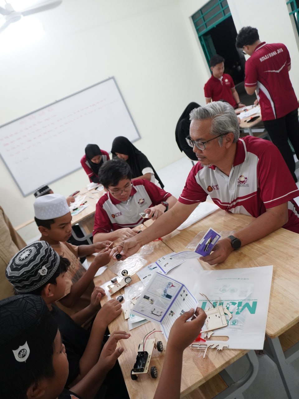 Pada sebelah malam, pasukan UTM menjalankan STEM Exploration & Young Innovators Lab melibatkan kanak-kanak kampung melalui aktiviti Build Your Own LEGO, Magnetic Car Race dan modul kejuruteraan asas. Walaupun berdepan cabaran komunikasi, fasilitator memastikan penyampaian ilmu berlangsung berkesan dan menarik, selari dengan usaha memperkukuh pendidikan STEM global.
