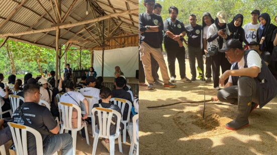 The session continued with a mangrove planting activity, carried out safely as the tide receded and exposed the muddy mangrove zone. This hands-on experience reinforced the message, “Save the mangrove, save the environment,” inspiring participants to appreciate the importance of active conservation efforts.