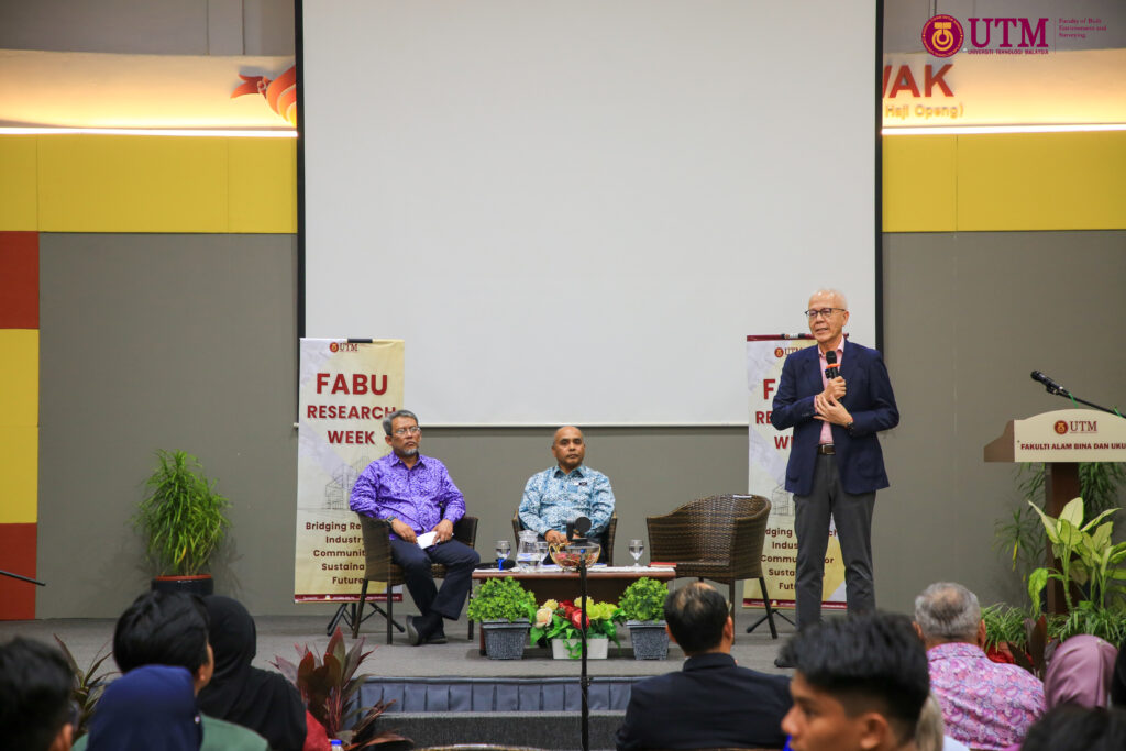JOHOR BAHRU, 13 Nov – Siri kesepuluh Wacana Intelektual MADANI 2025 anjuran Majlis Profesor dengan kerjasama Fakulti Alam Bina dan Ukur (FABU) berlangsung dengan penuh iltizam di Dewan Premier Sarawak, B12 FABU. Berteraskan tema “Cabaran dan Hala Tuju Pembangunan MADANI”, sesi ilmiah ini memberi tumpuan kepada usaha memperkukuh peranan akademia dalam membentuk hala tuju pembangunan negara yang holistik, mampan dan berteraskan nilai kemanusiaan.