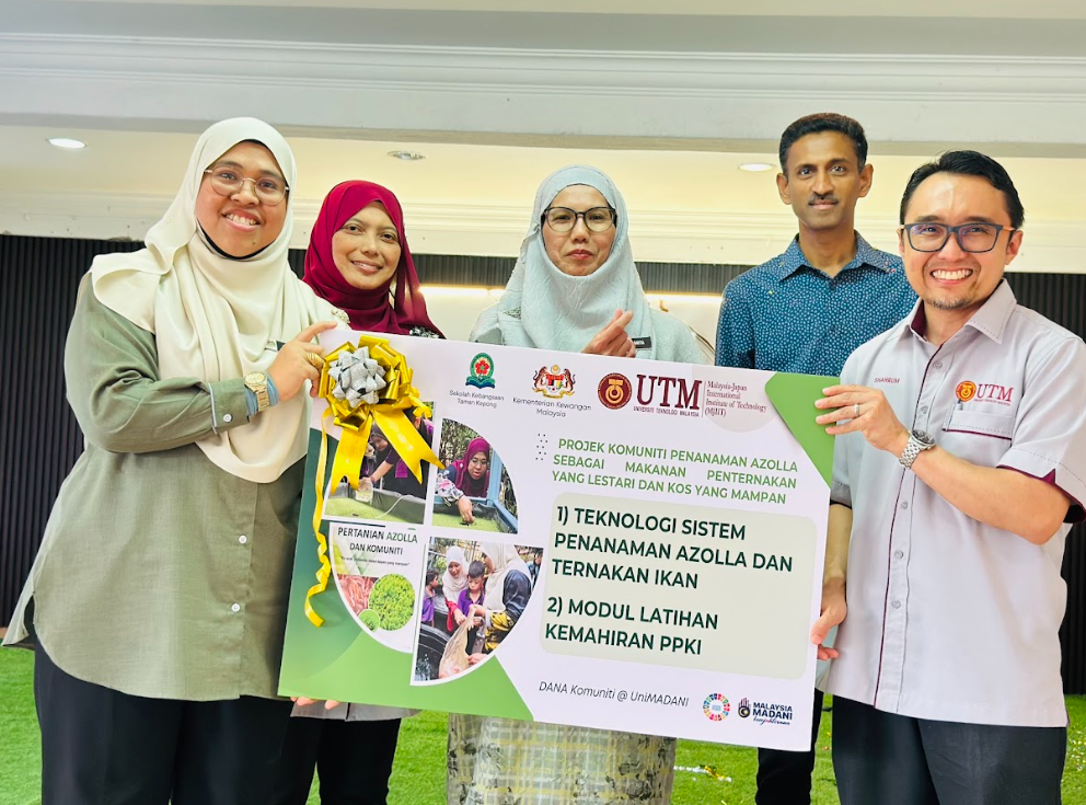KUALA LUMPUR, 9 Dis – Majlis Penutup Projek Komuniti Penanaman Azolla sebagai Makanan Penternakan Lestari dan Kos Mampan berlangsung dengan jayanya di Dewan SK Taman Kepong, hasil kerjasama strategik bersama pelbagai pihak. Projek ini dilaksanakan oleh pasukan penyelidik Institut Teknologi Antarabangsa Malaysia Jepun (MJIIT), Universiti Teknologi Malaysia (UTM) yang diketuai oleh Prof. Madya Ir. Dr. Pauziah Muhamad dengan sokongan dana Kementerian Kewangan Malaysia melalui geran Dana Komuniti @ UniMADANI. Inisiatif ini mencerminkan komitmen negara memperkukuh agenda Malaysia MADANI, khususnya dalam memperkasa komuniti melalui pendidikan, kelestarian dan inovasi.
