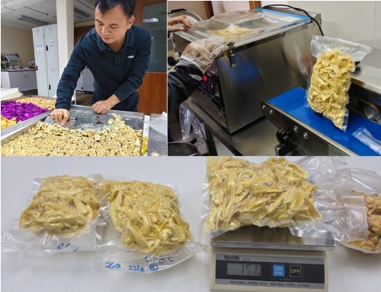 In the final stage of the training, participants learned how to harvest, weigh, package, and store freeze-dried products. Demonstrations of vacuum and nitrogen packaging techniques highlighted how proper handling preserves texture, flavour, and nutritional value while extending shelf life and preventing moisture absorption.