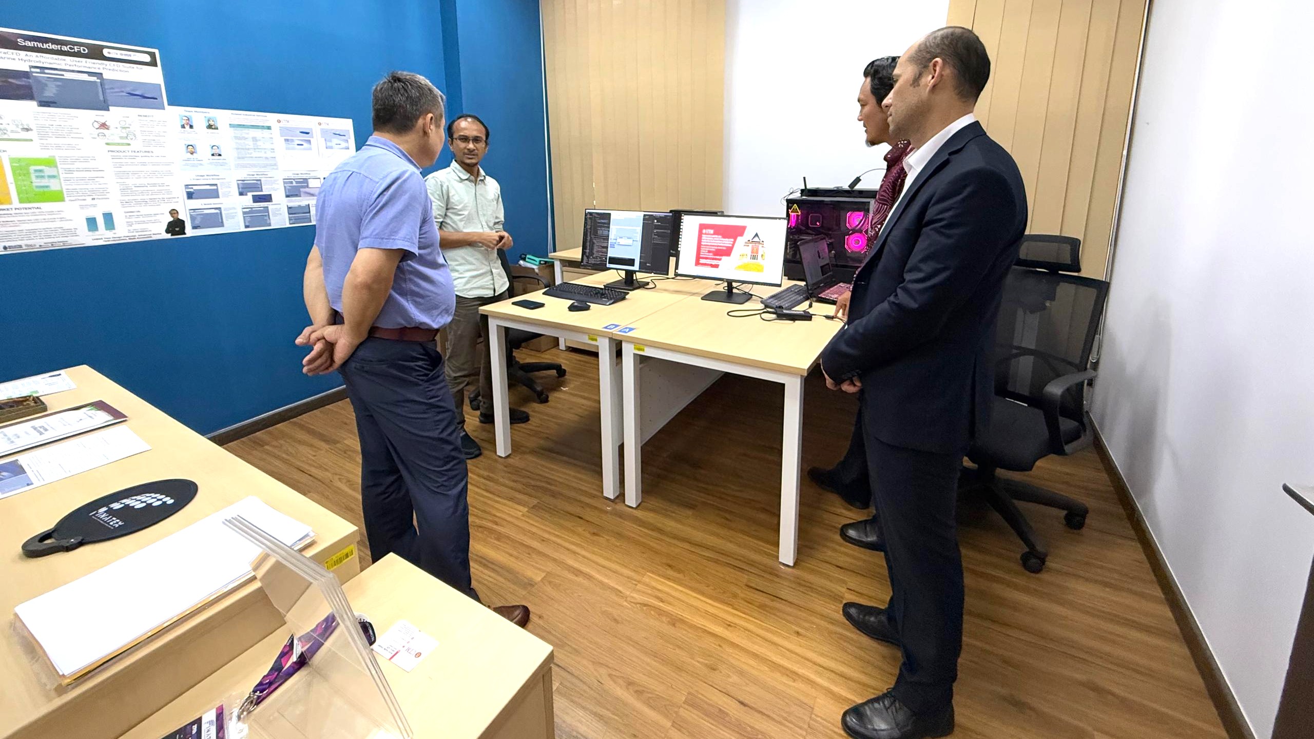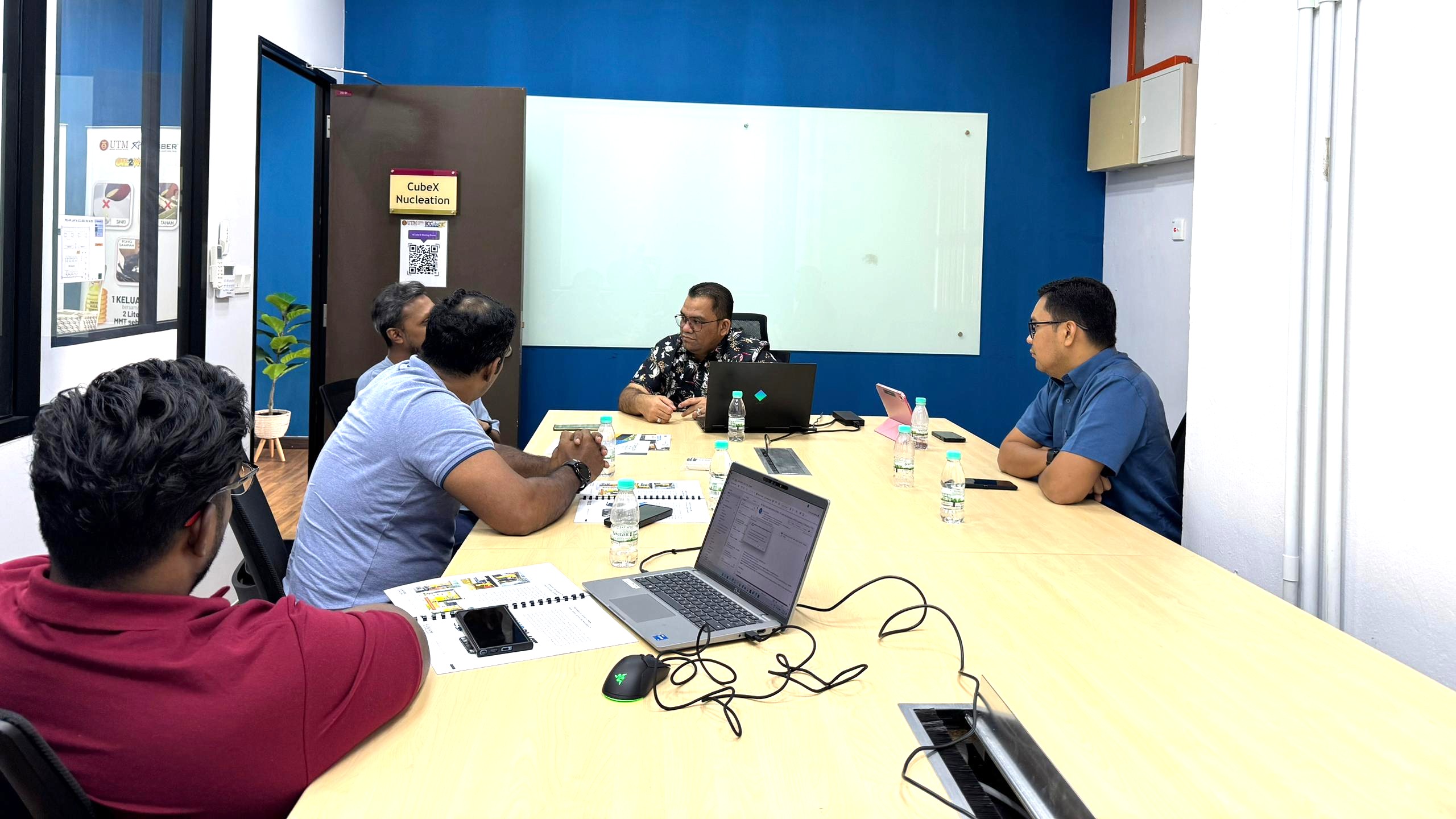 Syarikat hiliran UTM, Pure Aims Technologies Sdn. Bhd., bermesyuarat bersama rakan industri di bilik mesyuarat Inkubator ICCubeX