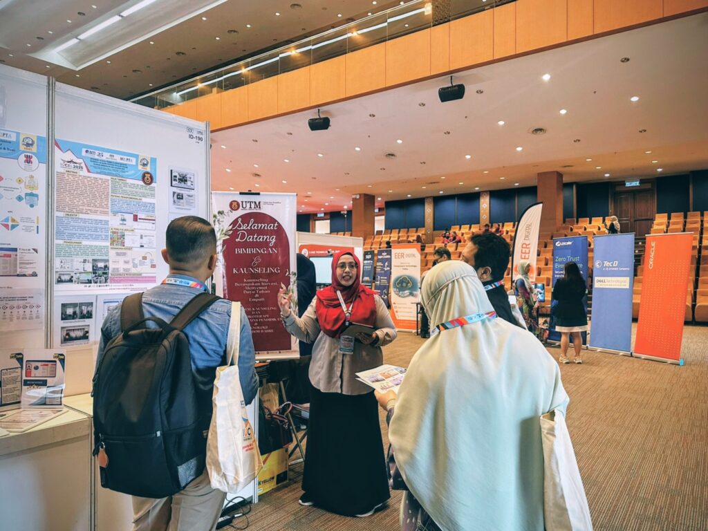 JOHOR BAHRU, 12 Dis – Universiti Teknologi Malaysia (UTM) terus mengukuhkan kedudukannya sebagai institusi peneraju dalam inovasi pedagogi digital apabila projek bertajuk Integrasi AI bagi Pembelajaran Inovatif Pendekatan Berpusatkan Pelajar dalam Kursus Bimbingan dan Kaunseling dianugerahkan pingat gangsa pada International University Carnival on e-Learning (IUCEL) 2025. Karnival berprestij itu berlangsung pada 13 November 2025 di Dewan Canselor, Universiti Teknikal Malaysia Melaka (UTeM), sekali gus mengiktiraf kecemerlangan inovasi pengajaran yang berupaya memperkasa ekosistem pembelajaran pendidikan tinggi yang inklusif, adaptif dan berteraskan teknologi.