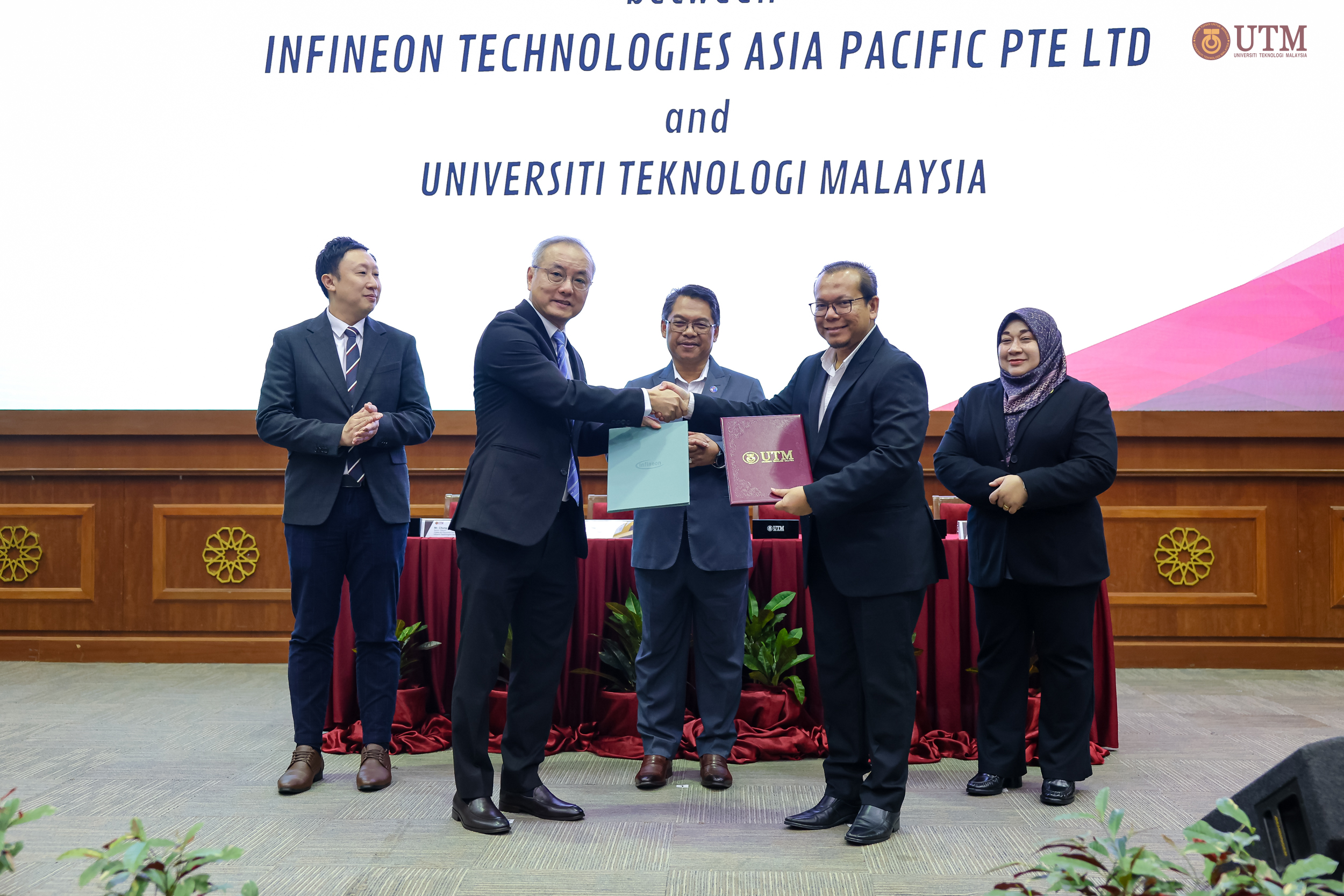Majlis menandatangani perjanjian tersebut disempurnakan oleh Naib Canselor UTM, Prof. Dr. Mohd Shafry Mohd Rahim, dan Naib Presiden Infineon Technologies Asia Pacific, Goh Say Yeow, dengan disaksikan oleh Timbalan Menteri Pendidikan Tinggi, Datuk Ts. Mustapha Sakmud, di Dewan Azman Hashim, Menara Razak, UTM Kuala Lumpur.