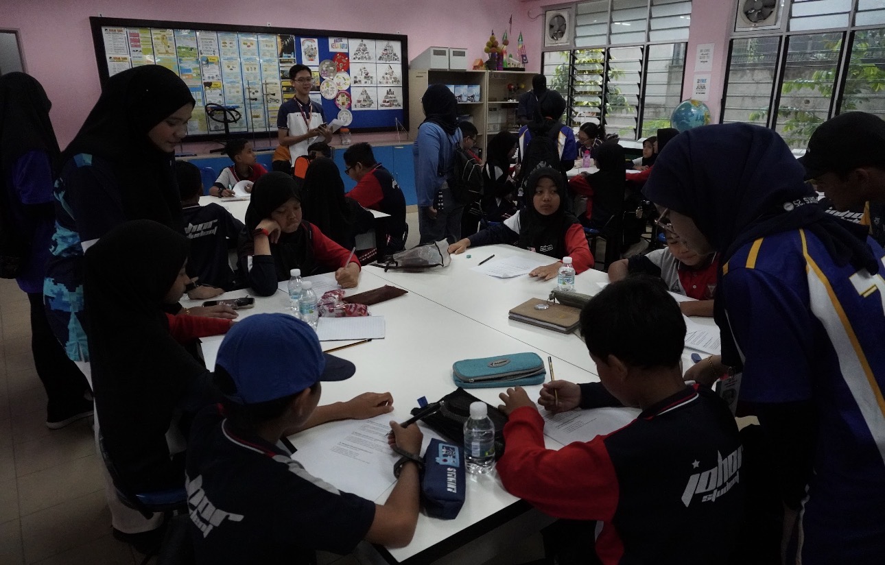 Seterusnya, murid menyertai dua sesi kuiz bagi menilai tahap kefahaman mereka berkaitan konsep 3R dan beberapa SDG terpilih, antaranya SDG 4 (Pendidikan Bermutu), 6 (Air Bersih dan Sanitasi), 9 (Industri, Inovasi dan Prasarana), 11 (Bandar dan Masyarakat Mampan), 13 (Tindakan Iklim), 15 (Kehidupan di Darat) dan 17 (Kerjasama demi Matlamat). Aktiviti ini bukan sahaja menguji pengetahuan sedia ada, malah menggalakkan murid berfikir secara kritikal serta bekerjasama dalam kumpulan. Dapatan daripada sesi kuiz menunjukkan peningkatan pengetahuan yang ketara, sekali gus membuktikan keberkesanan pendekatan pemindahan ilmu melalui kaedah pembelajaran aktif dan interaktif yang diterapkan oleh mahasiswa UTM.