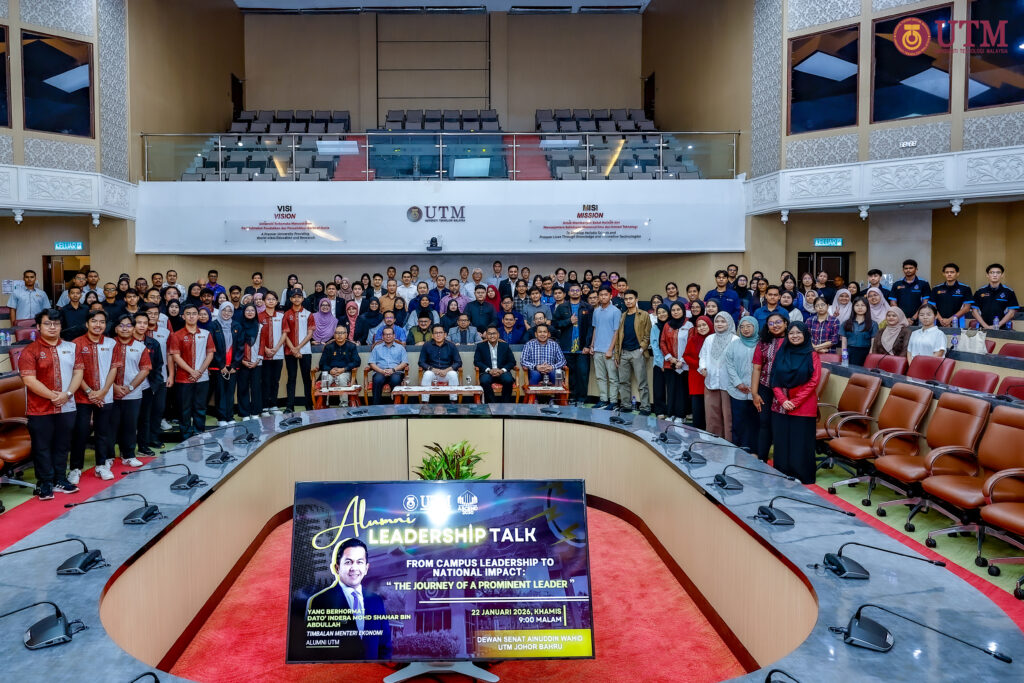 JOHOR BAHRU, 22 Jan – Universiti Teknologi Malaysia (UTM) reaffirmed its commitment to nurturing values-driven national leaders through a leadership discourse titled From Campus Leadership to National Impact: The Journey of a Prominent Leader, held at Dewan Senat Ainuddin Wahid, UTM Johor Bahru.