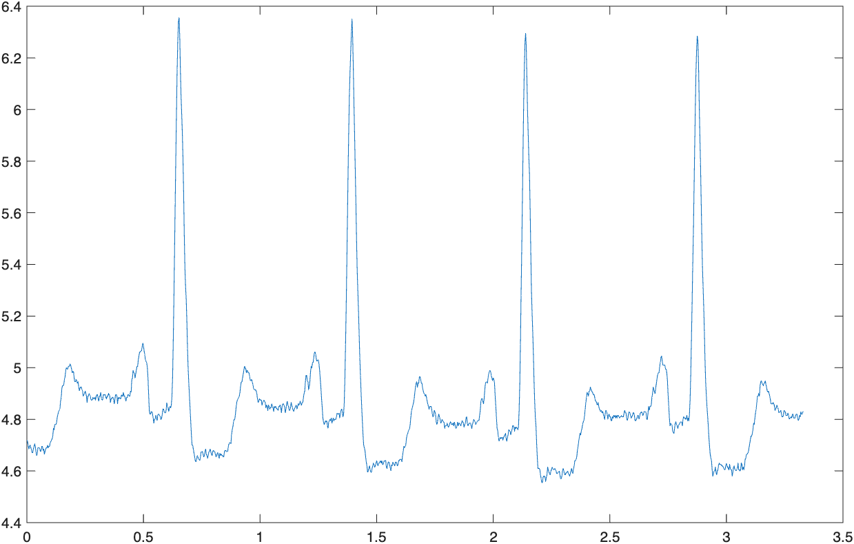 The quality of ECG signals is also often affected by various noises and artefacts originating from sources within and outside of patients’ bodies. For example, motion artefacts caused by patient movement may produce fluctuations with larger amplitude than normal ECG signals. Electrode contact artefacts can degrade signal quality due to poor skin preparation, dried electrode gel or defective ECG cables. Sudden body movements can also trigger the low-frequency noise known as baseline wander. Poor ECG signal quality increases the risk of misdiagnoses. If the ECG signals are too noisy, some significant abnormalities may go undetected, which can jeopardise the patient’s safety. Figure 2 shows the contaminated ECG signal obtained from the MIT-BIH Arrhythmia Database and visualised using the MATLAB software.
