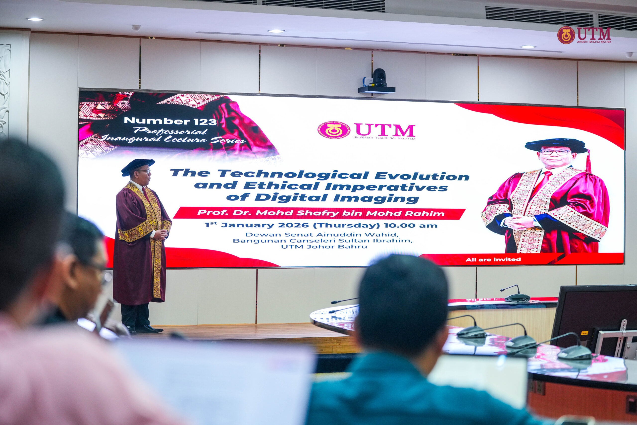 JOHOR BAHRU, 1 Jan – Universiti Teknologi Malaysia (UTM) terus memperkukuh peranannya sebagai pusat kecemerlangan ilmu dan inovasi menerusi penganjuran Professional Inaugural Lecture Series ke-123 yang disampaikan oleh Naib Canselor UTM, Prof. Dr. Mohd Shafry Mohd Rahim, bertempat di Dewan Senat Ainuddin Wahid, Bangunan Canseleri Sultan Ibrahim, UTM, hari ini.