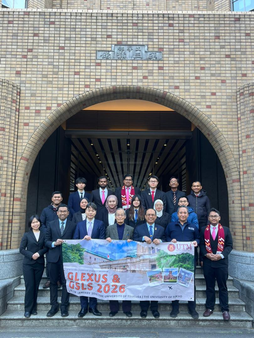 TSUKUBA, 13 Jan – Pembinaan masa depan negara bermula dengan usaha menyemai dan memupuk pemimpin pelajar bertaraf global yang bukan sahaja cemerlang dari segi intelektual, malah berakar pada nilai, integriti dan tanggungjawab sosial. Aspirasi inilah yang menjadi nadi utama penganjuran Global Student Leadership Summit (GSLS) 2026 yang berlangsung pada 9 hingga 11 Januari serta Global Leadership Exchange for UTM Students (GLEXUS) pada 13 Januari di Jepun. Kedua-dua inisiatif ini mencerminkan komitmen berterusan dalam pembangunan kepimpinan pelajar yang berwawasan global, berteraskan nilai dan berintegriti sebagai agenda strategik negara dalam melahirkan generasi pelapis kepimpinan masa depan yang berdaya saing di pentas antarabangsa.