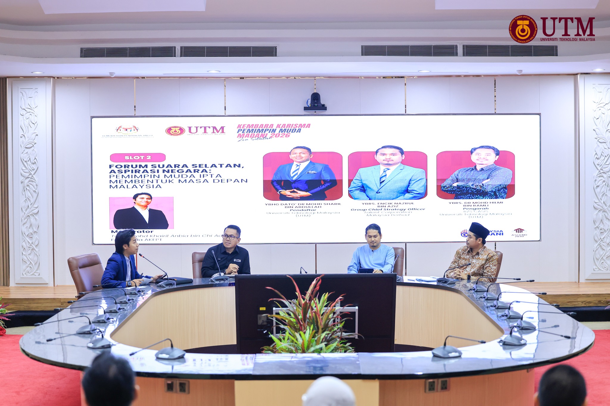 Selain menghimpunkan barisan kepimpinan dari pelbagai IPTA, forum ini turut menampilkan panelis berpengalaman daripada pelbagai latar institusi dan industri. Antaranya ialah YBhg. Dato’ Dr. Mohd Sharil Abdullah, Pendaftar UTM; Nazrul Aziz, Ketua Pegawai Strategi Kumpulan, Talent Corporation Malaysia Berhad; serta Dr. Mohd Hilmi Ramli, Pengarah Pusat Kajian Tinggi Islam, Sains dan Peradaban Raja Zarith Sofiah (RZS-Casis), UTM. Sementara itu, sesi forum dikendalikan oleh Ts. Dr. Mohd Khairil Anbia Chi Adam, Felo Muda Akademi Kepimpinan Pendidikan Tinggi (AKEPT).