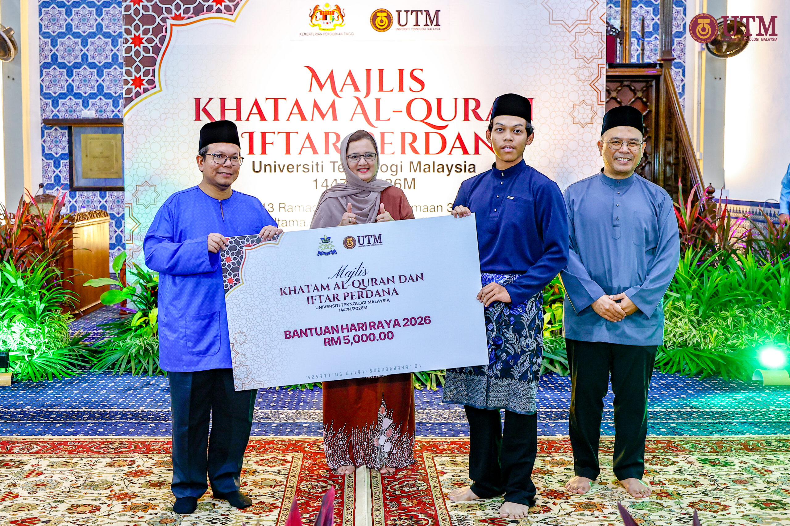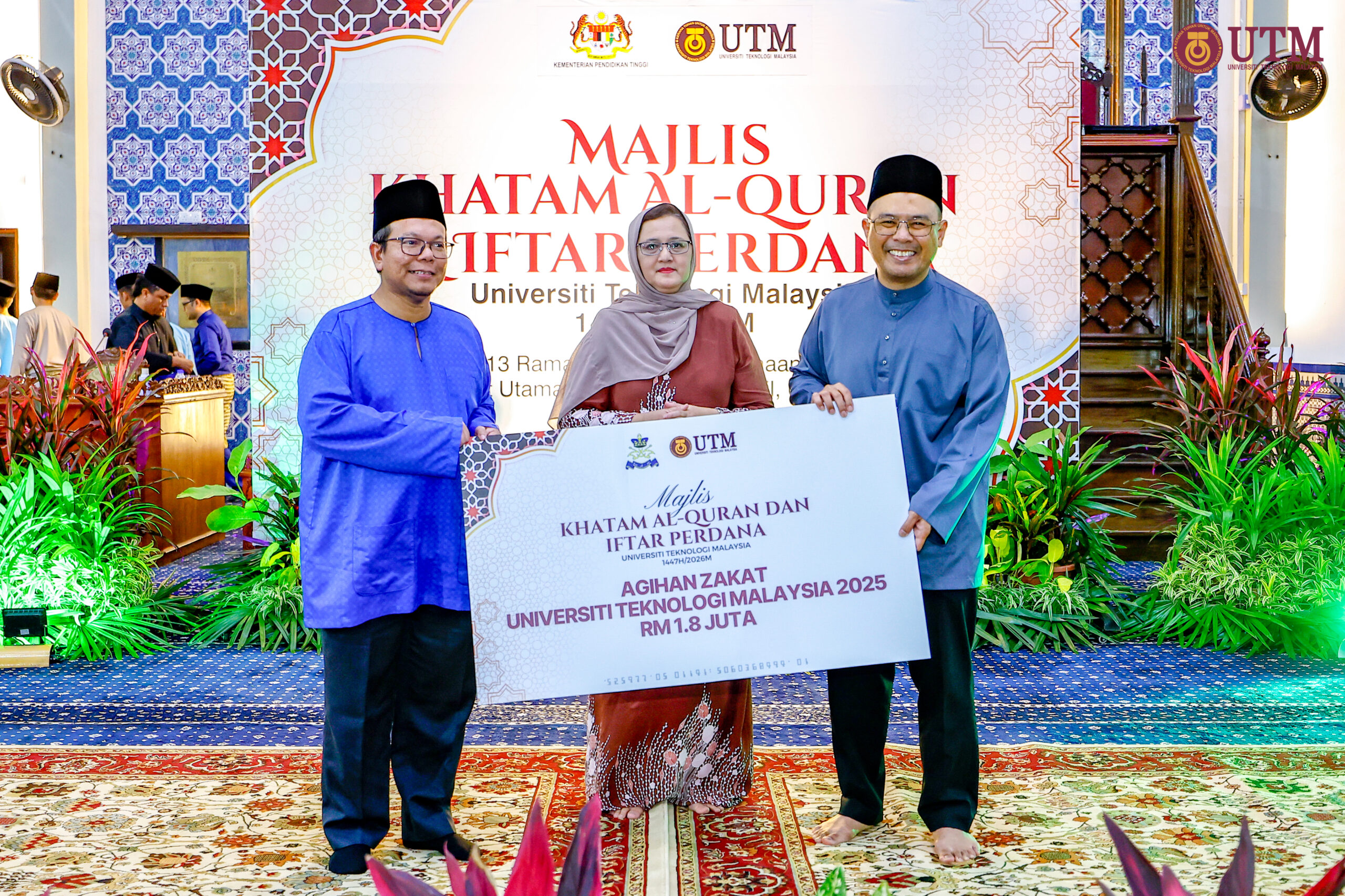 JOHOR BAHRU, 3 Mac – Universiti Teknologi Malaysia (UTM) terus memperkukuh agenda kebajikan mahasiswa apabila melancarkan inisiatif Dapur Siswa MADANI UTM serta menyampaikan agihan zakat berjumlah RM1.8 juta dalam Majlis Khatam Al-Quran dan Iftar Perdana UTM 2026 yang berlangsung di Masjid Sultan Ismail, di sini, hari ini.