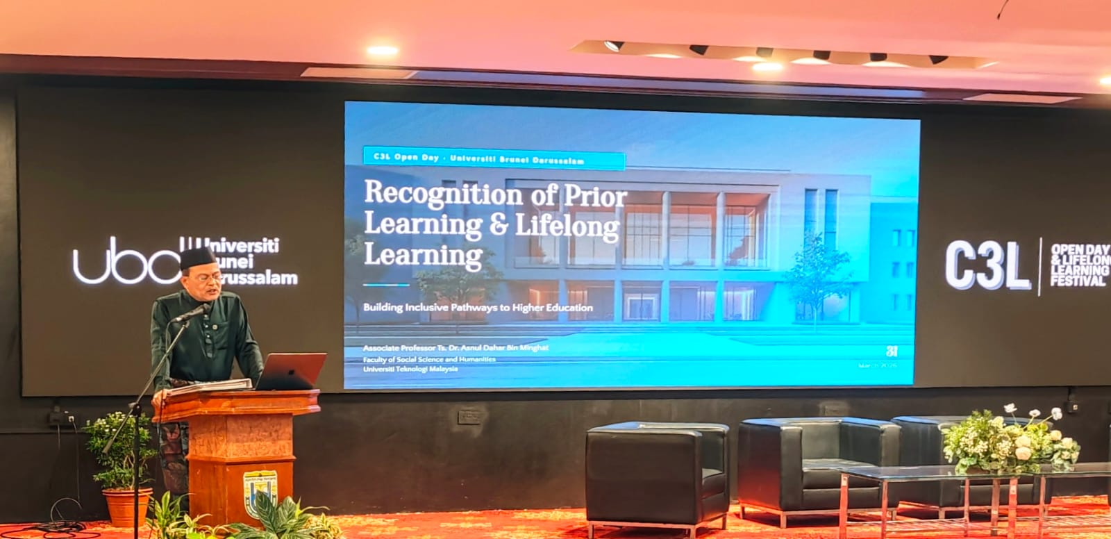 Universiti Teknologi Malaysia (UTM) mengukuhkan kedudukannya di persada antarabangsa menerusi penglibatan aktif staf akademiknya dalam Program Hari Terbuka 3CL dan Festival Pembelajaran Sepanjang Hayat 2026 anjuran Universiti Brunei Darussalam. Prof. Madya Ts. Dr. Asnul Dahar Minghat, pengucap utama dan ahli panel forum, menegaskan bahawa pembelajaran sepanjang hayat kini merupakan satu keperluan asas dalam mendepani perubahan pesat dunia pekerjaan dan transformasi teknologi.
