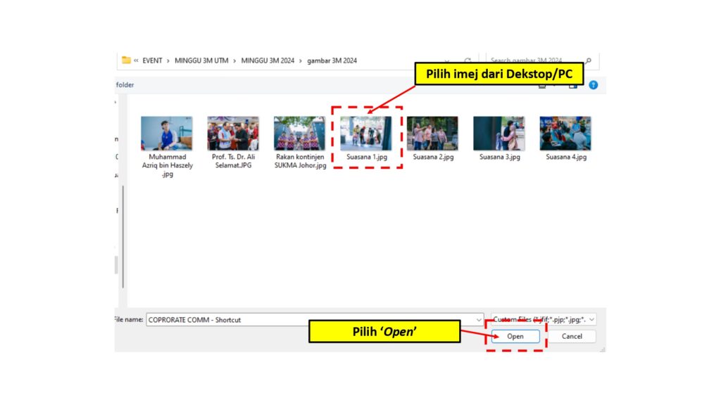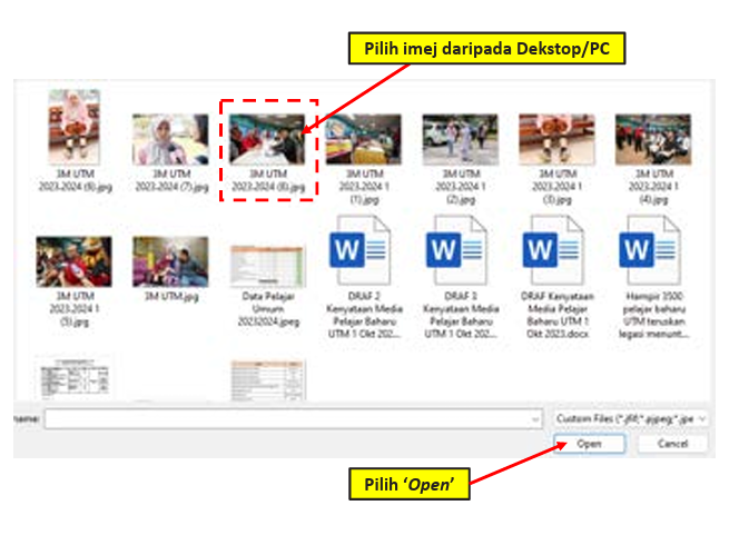5.3.2 Hanya lima (5) gambar sahaja beserta kapsyen yang sesuai boleh dimuat naik ke dalam teks.