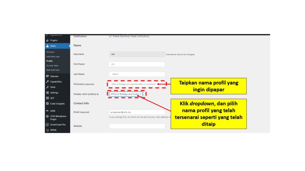 6.0 PENUKARAN PAPARAN NAMA PROFIL