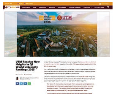 Artikel telah diterbitkan dan terkandung dalam paparan portal UTM NewsHub untuk bacaan umum.