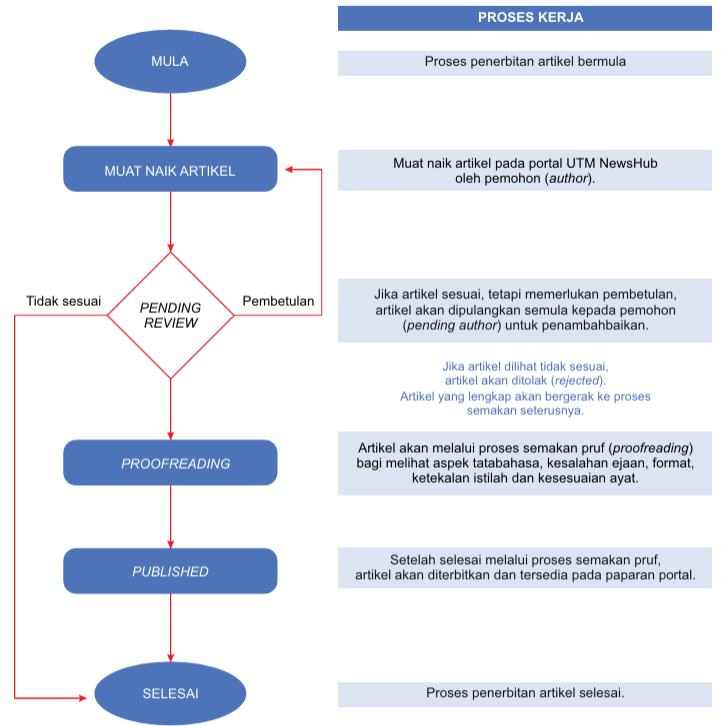 Artikel yang telah dimuat naik ke dalam portal UTM NewsHub akan melalui proses semakan dan penyuntingan oleh pihak editorial bagi melihat kesesuaian penerbitan di platform ini berdasarkan elemen yang telah dinyatakan sepertimana di atas.